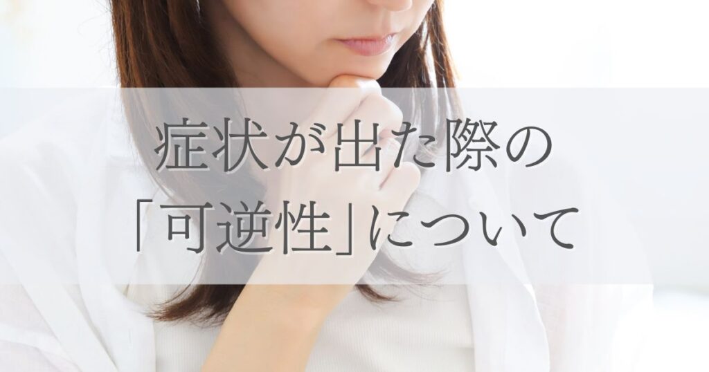 - 加齢による変化と見分けがつかなくなり、対策が遅れるケースがある